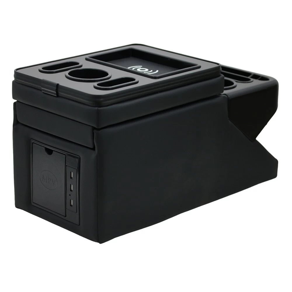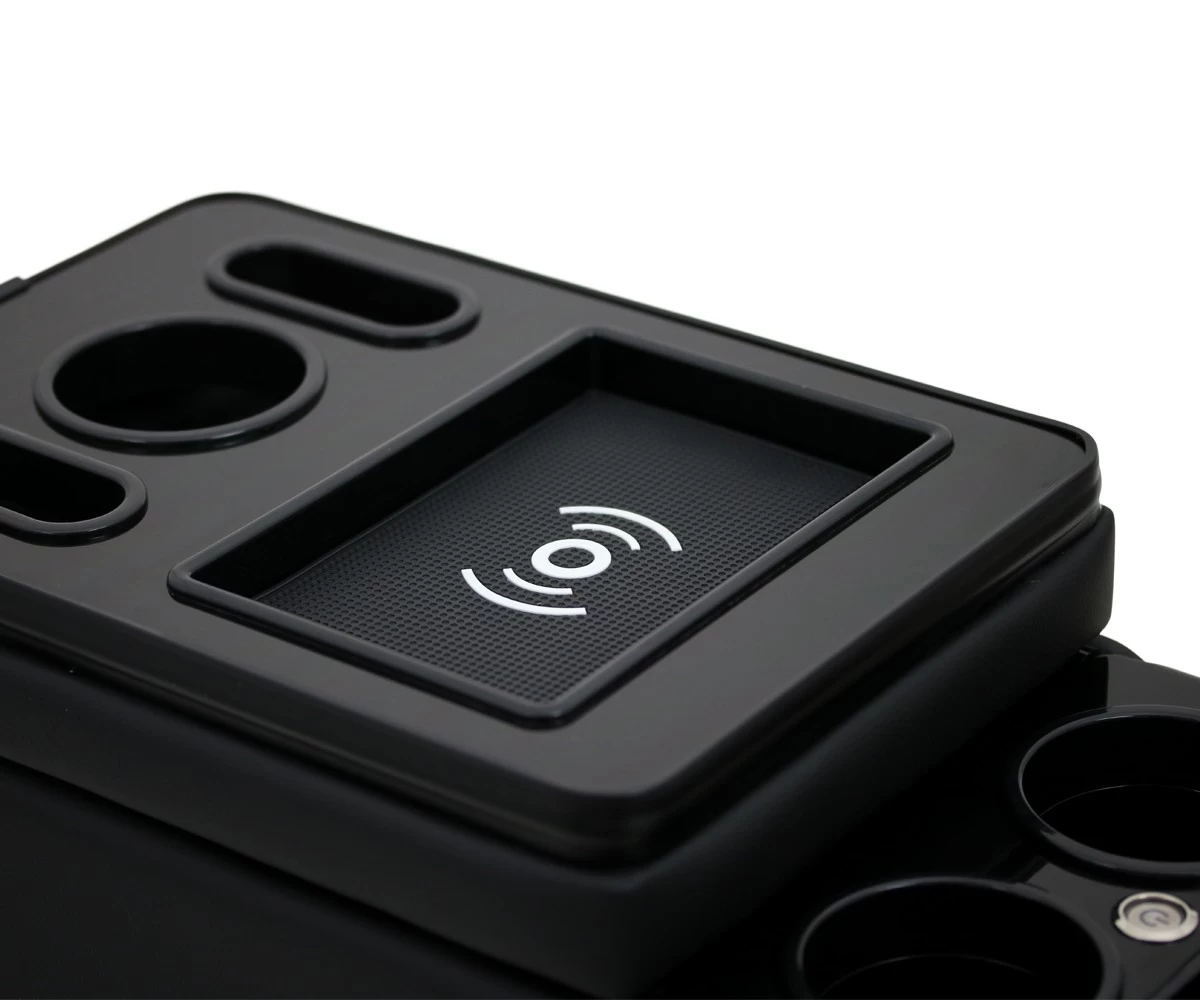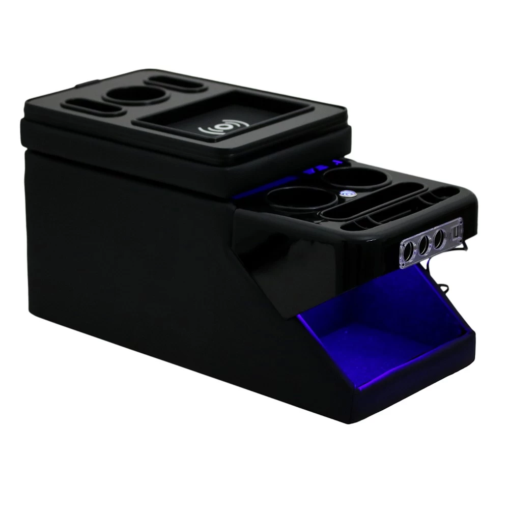 - Unsere Mittelkonsolen-Aufbewahrungsbox mit USB Anschlüssen, LED Beleuchtung und Induktionsladestation ist perfekt für die Organisation all Ihrer persönlichen Geräte wie Telefon, Getränke, Kleingeld und mehr.