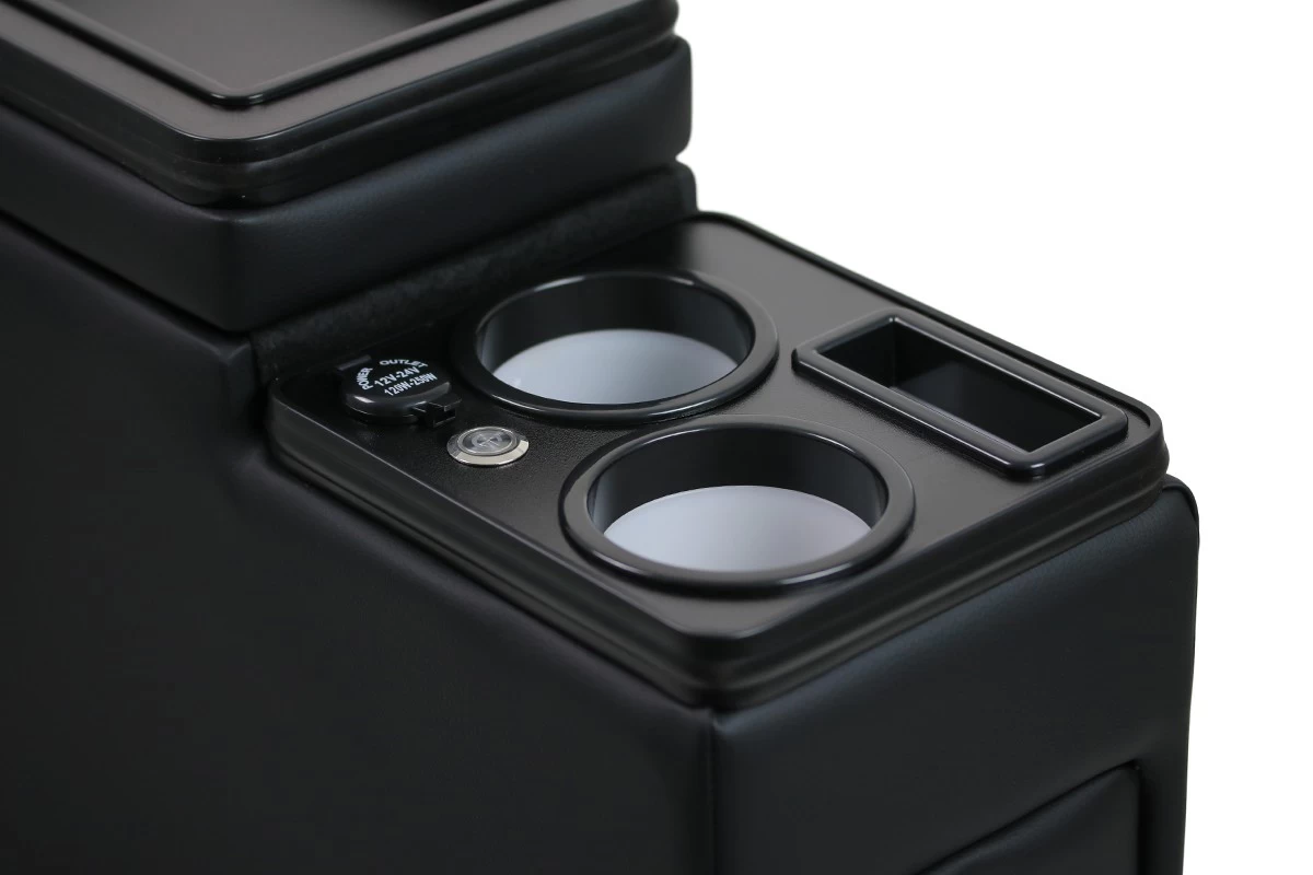 - Unsere beleuchtete Mittelkonsolen-Aufbewahrungsbox mit USB Anschlüssen ist perfekt für die Organisation all Ihrer persönlichen Geräte wie Telefon, Getränke, Kleingeld und mehr. Sie verfügt über einen Schiebemechanismus, so dass Sie Ihre Wertsachen verstecken können. Die Aufbewahrungsbox hat einen Klettverschluss, damit sie sicher auf Fußmatten / Teppichen steht. In glänzendem Schwarz mit schwarzem Kunstleder verarbeitet, ist es nicht nur eine fantastische Aufbewahrungslösung, sondern sieht auch ziemlich schick aus.