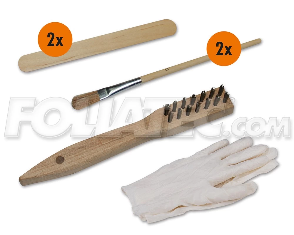 - inkl. Montagematerial: 1 x Stahlbürste, 2 x Einweg-Schutzhandschuhe, 2 x Pinsel, 2 x Spatel