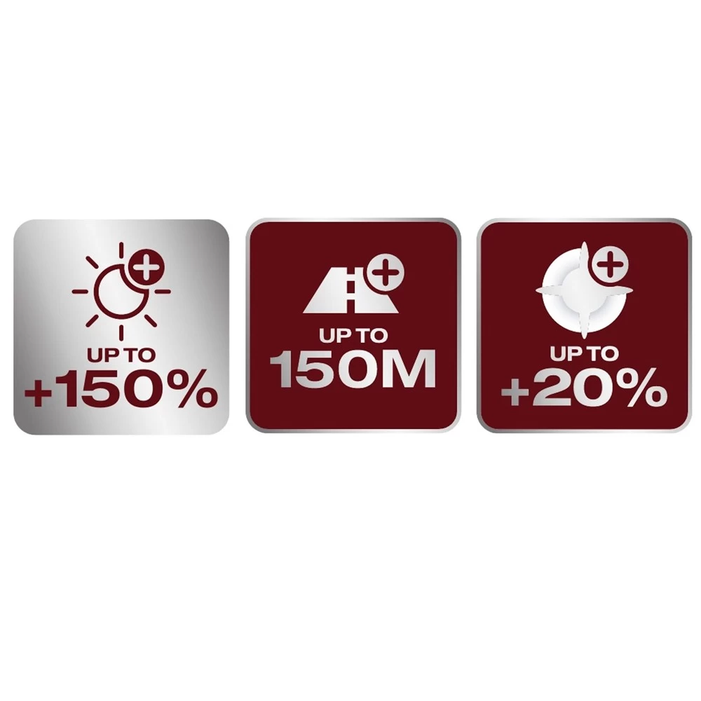 - bis zu 150 % mehr Helligkeit (im Vergleich zum gesetzlichen Mindeststandard)